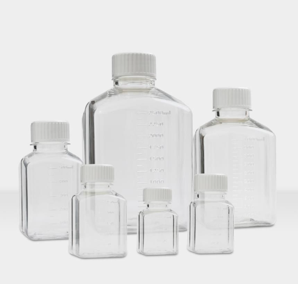 The media bottles are made of high-transparency polyethylene terephthalate glycol (PETG) and are suitable for storing and transporting liquid culture medium, solutions, and serum.
